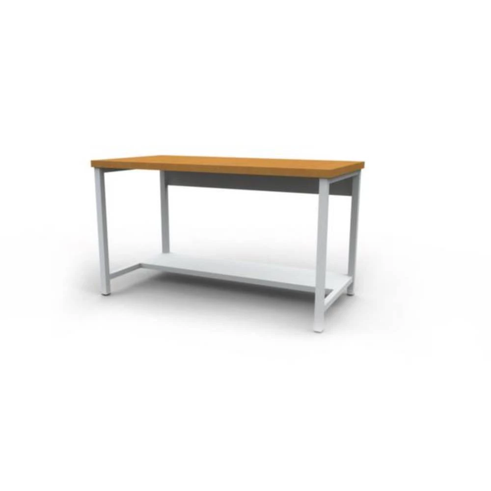 Montažni stol, osnovni element, visina x širina x dubina 844 x 1500 x 750 mm, vrh izrađen od bukovog multipleksa, debljina vrha 25 mm, četveronožni nosač od čelika s peći za emajliranje u izboru boja, četvrtasta cijev, potkonstrukcije: 1/2 police.