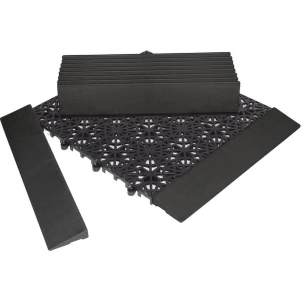 Podna rešetka, modularni sustav, bočni klizači, visina x duljina x širina 14 x 300 x 40 mm, za unutarnju / vanjsku, izrađenu od polipropilena u crnoj boji, element s utičnim utikačima, izolacijski, proklizajući i bučno izolirani, otporni na UV zračenje, testirano u skladu s DIN 51130 R10.