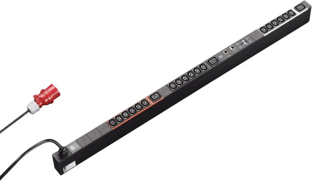 Kompaktna raspodjela energije za upotrebu u IT poslužiteljima i mrežnim ormarima. Okomita ugradnja pomoću isporučenog univerzalnog držača za zajedničke IT regale. Odgovarajuće za brzo sklapanje bez alata u Rittal TS IT stalak pomoću priloženog posebnog dodatka plug and play. Robusno aluminijsko kućište s trajno ugrađenim izlaznim prorezima, ovisno o tipu EN60320 / C13 ili EN60320 / C19. Izlazni otvori mogu se zaštititi od slučajnog isključivanja kabela s bravom. Neiskorišteni otvori mogu se zatvoriti poklopcima. Time se sprječava slučajno preopterećenje pojedinih faza i krugova. Strujni krugovi ili faze su obojeni za višefazne PDU verzije. Prema verziji, ugrađen je fiksni priključni kabel s CEE utikačem, tako da je PDU odmah spreman za upotrebu. Upravljani PDU ima opsežne upravljačke funkcije za praćenje struje i snage po utoru. Svaki utor može se prebaciti putem bistabilnih releja. Osnovna konfiguracija može se postaviti putem integriranog OLED zaslona u boji i može se brzo pristupiti podacima o potrošnji električne energije. Daljinski pristup web PDU poslužitelju moguć je putem mrežnog sučelja. Parametri potrošnje mogu se proslijediti na DCIM softver putem SNMP-a. Na CAN sučelje mogu se povezati do 4 senzora (temperatura / vlaga / pristup) radi praćenja okolišnih parametara.