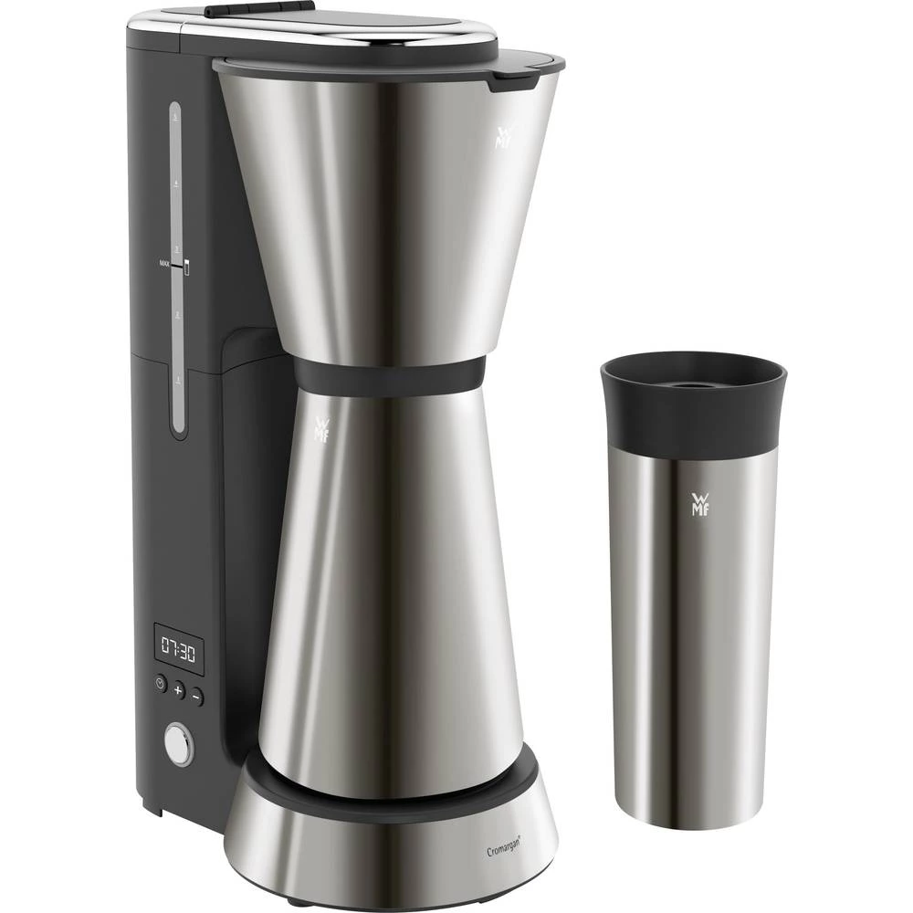 Uživajte u aromatičnoj vrućoj kavi bilo kad i bilo gdje. Aparat za filter kavu koji štedi prostor širi ukusnu aromu kave odmah ujutro, ako želite, kada se probudite s 24-satnim tajmerom. Bilo za ležeran doručak kod kuće ili za put do ureda - jednostavno stavite termo vrč ili termo šalicu ispod uređaja za kuhanje kako biste "krenuli" i krenuli. Dva poklopca zatvaraju nepropusno i bez kapanja, a zahvaljujući toplinskoj izolaciji WMF Keep Hot, okus svježe kuhane, vruće kave ostaje satima. Inače, pije i savjest čista. Budući da s isporučenom termo šalicom više nema potrebe za jednokratnim šalicama za kavu.