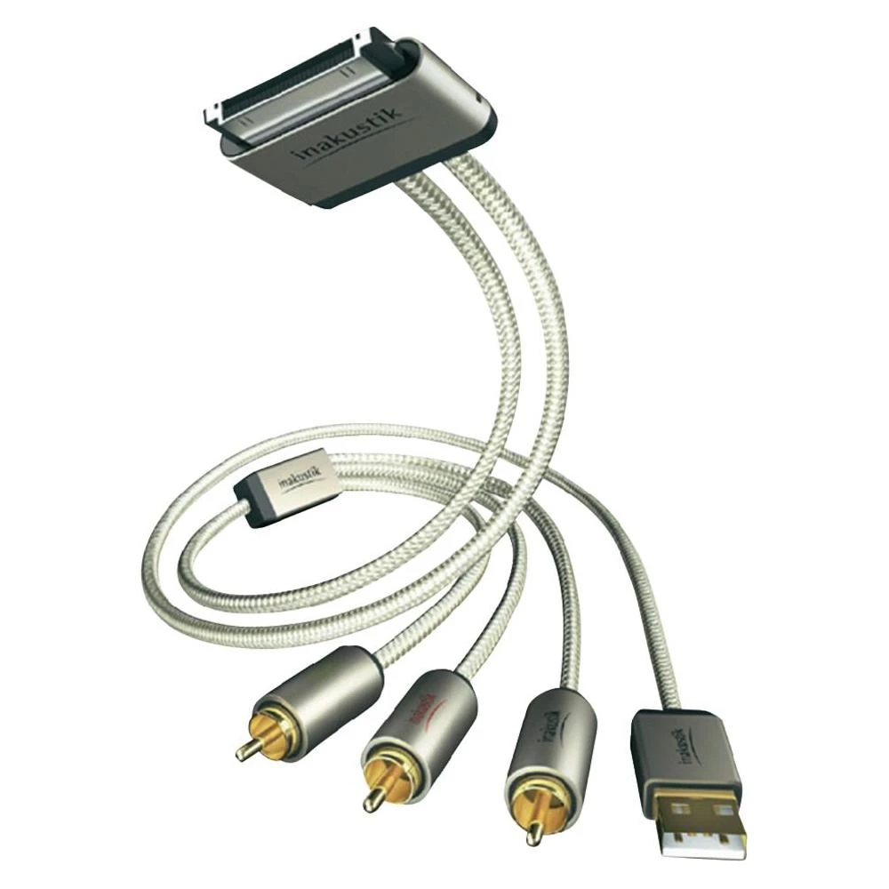 Audio/Video kabel Inakustik za iPad/iPhone/iPod [1x DOCK utikač 30 polni - 3x činč utikač, USB 2.0 utikač A] 2m, bijel