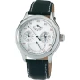 Automatski sat s remenom izgleda krokodilske kože oduševljava svojim višenamjenskim prikazom. Uz vremena prikazuje drugu vremensku zonu, rezervni hod, dan u sedmici i datum. Stakleno dno omogućava
