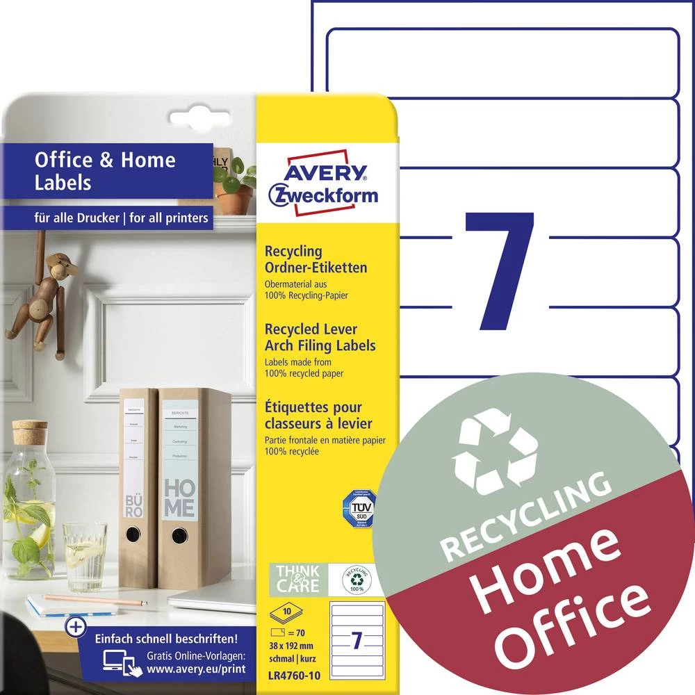 - Savršen protok pisača - za laserske pisače potvrdio TÜV SÜD Gornji materijal izrađen od recikliranog papira Reciklirajuće naljepnice s dugotrajnom ljepljivom snagom