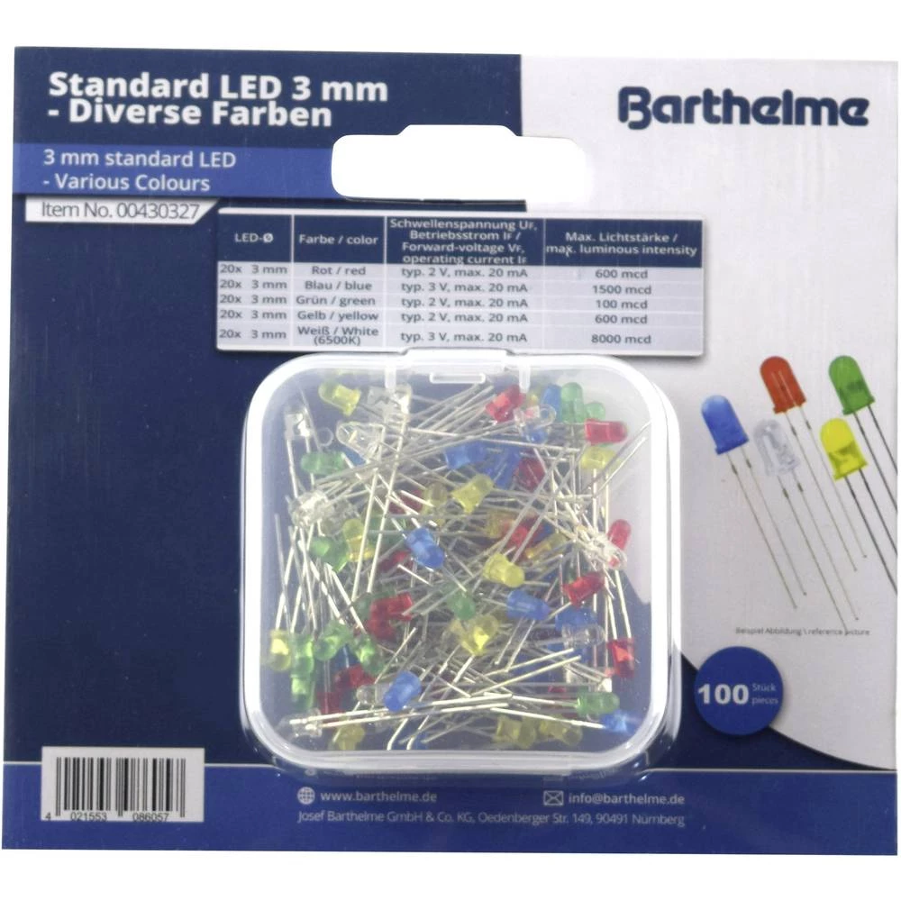 Barthelme 00430327 LED komplet Crvena, Plava boja, Zelena, Žuta, Toplo-bijela Okrugli 3 mm 100 mcd, 600 mcd, 1500 mcd, 9000 mcd