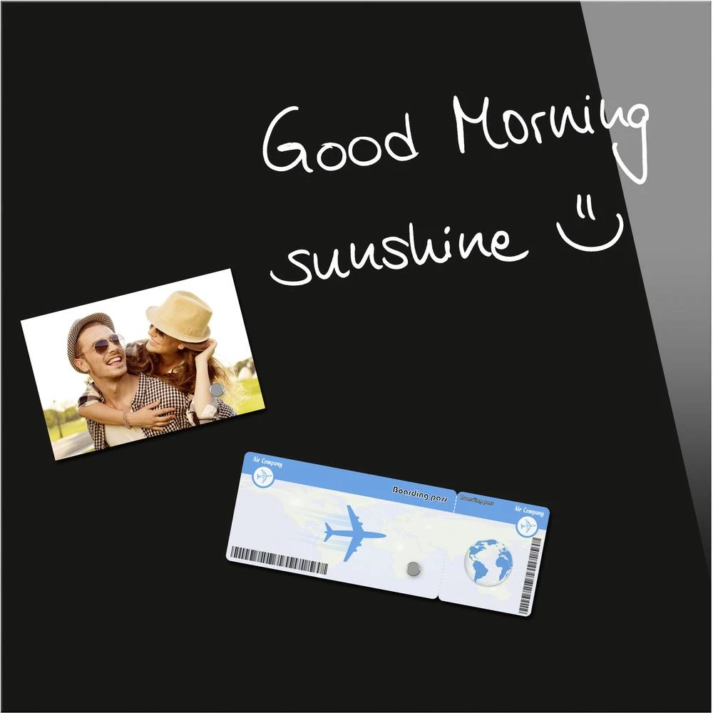 - Crna staklena magnetska ploča za etiketiranje svim komercijalno dostupnim markama krede i lijepljenje nosača jakim magnetima. Kaljeno sigurnosno staklo (EN 12150-1)