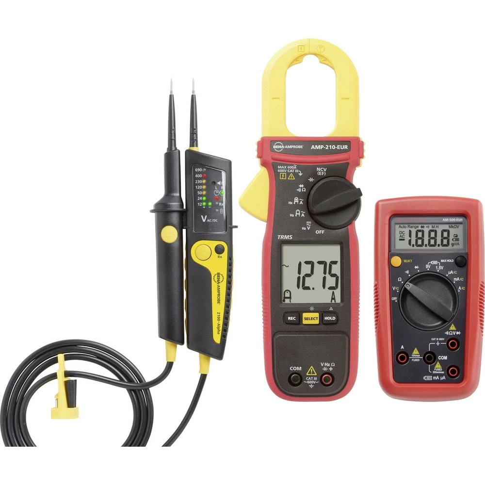 OSNOVNI KIT: Ispitivač napona 2100-Alpha + digitalni multimetar AM-500-EUR + istinska efektivna stezaljka za struju AMP-210-EUR do 600 A AC