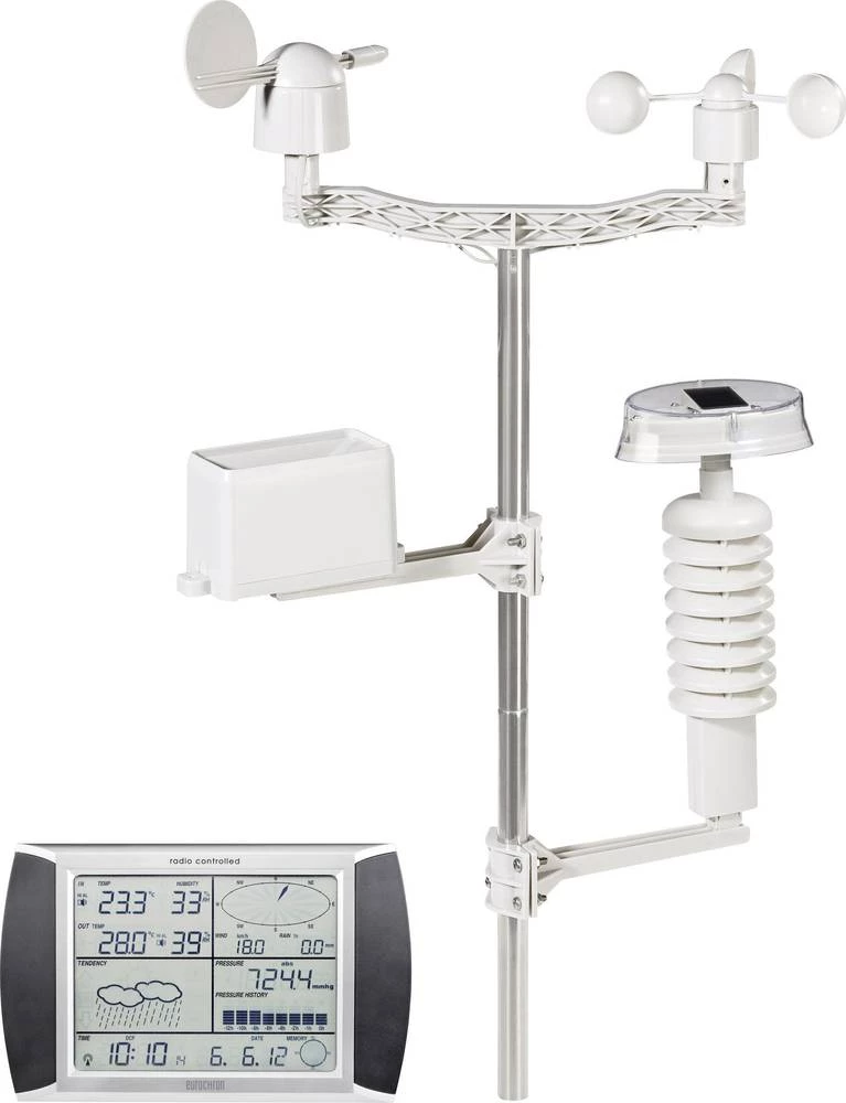 | Funkcija (vremenske stanice) | Vanjska vlaga, Vanjska temperatura, Osjećaj Temperature (hladan vjetar), Unutarnja vlaga, Unutarnja temperatura, Tlak zraka, Max./min. vrijednosti, Kišomjer, Rosište, Uređaj za mjerenje vjetrova, Vremenska prognoza , Radio sat (DCF77), Datum, Radni dan, Maks. 4 senzora, PC priključak |