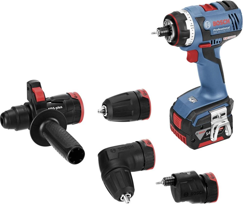 - Potpuna prilagodljivost – s prihvatom za bitove, steznom glavom, kutnim nastavkom, ekscentarskim nastavkom te nastavkom za bušaći čekić Bosch FlexiClick sustav nudi optimalno rješenje u svakoj radnoj situaciji
