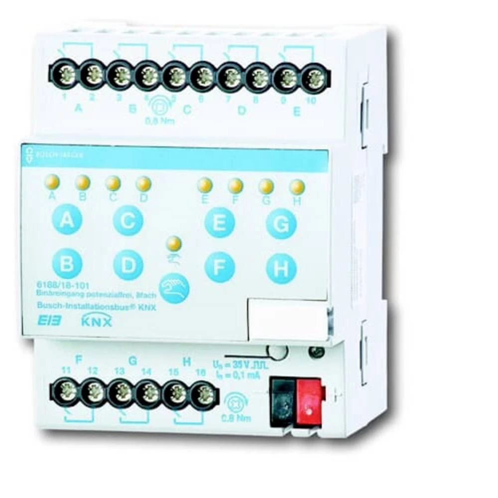 Upit za kontakt za 8 bespotencijalnih kontakata. Uređaj sam daje napon upita. Sabirnica je povezana putem zatvorenog terminala sabirnice.