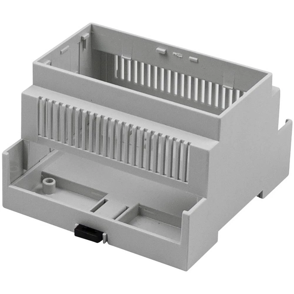 Modularno kućište šine serije CNMB s prorezima za ventilaciju za optimalnu cirkulaciju zraka, opciono s poklopcem i priključnicama. Kućište nudi različite opcije za integriranje tiskanih pločica: Uz pomoć vodilica, do 3 tiskane pločice mogu se vodoravno priključiti i do 2 tiskane pločice okomito. Pomoću ugradbenih kupola na osnovnu ploču kućišta, ploče sa sklopkama se također mogu učvrstiti.