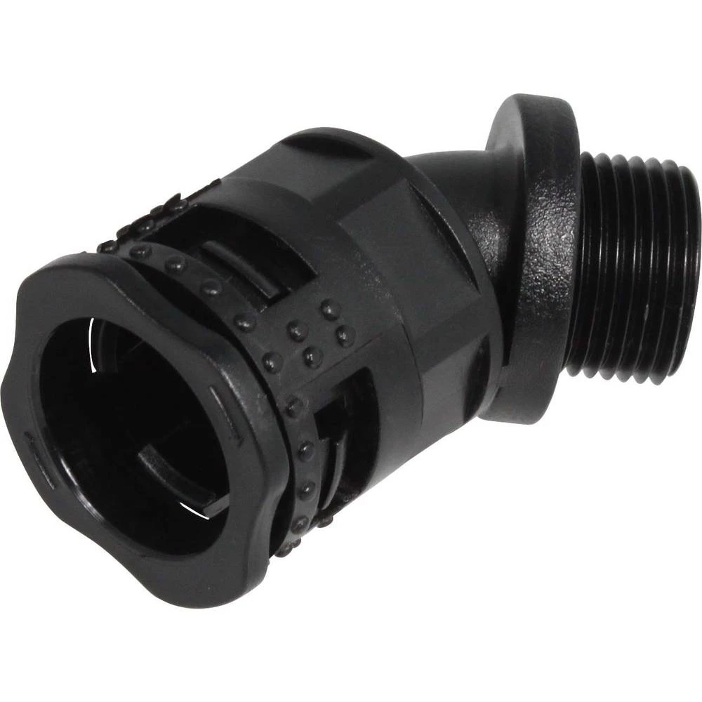 FKC-B45 Klik metrički IP66 je plastični kotačić 45 ° od poliamida 6 s metričkim vanjskim navojem. Luk ima zaštitu IP66, bez halogena i ne širi plamen. Ovaj vijčani spoj koristi se za plastična valovita crijeva. Prednosti su jednostavna i brza montaža i demontaža plastičnih valovitih cijevi. S klinastom bravom, plastična valovita crijeva mogu se osigurati od nenamjernog otpuštanja. Stupanj zaštite IP66 prema DIN EN 60529 * Otpornost na temperaturu prema LV312-3 -40 ° C do + 120 ° C, privremeno do + 140 ° C Zapaljivost: UL 94 V2