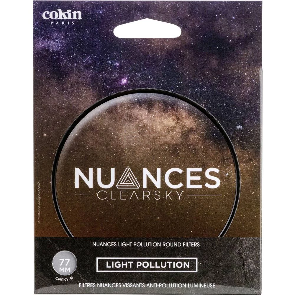 Cokin Clearsky filtar blokira određene valne duljine gradskih svjetala kao što su natrijeve i živine sijalice. Ovo uklanja žuti i narančasti sjaj uličnih svjetiljki za noćno gradsko fotografiranje. Također povećava kontrast neba za astrofotografiju zatamnjujući gradijent pozadine neba i ističući zvijezde ili Mliječni put. Svojstva: -Dvostrani multi-AR premaz i AF premaz (vodootporan, otporan na ulje i ogrebotine) -Fod fosfatni laser neodimijumskog stakla visoke rezolucije -Preporučene radne temperature: -10 ° C do + 40 ° C -Promjer: 77 mm