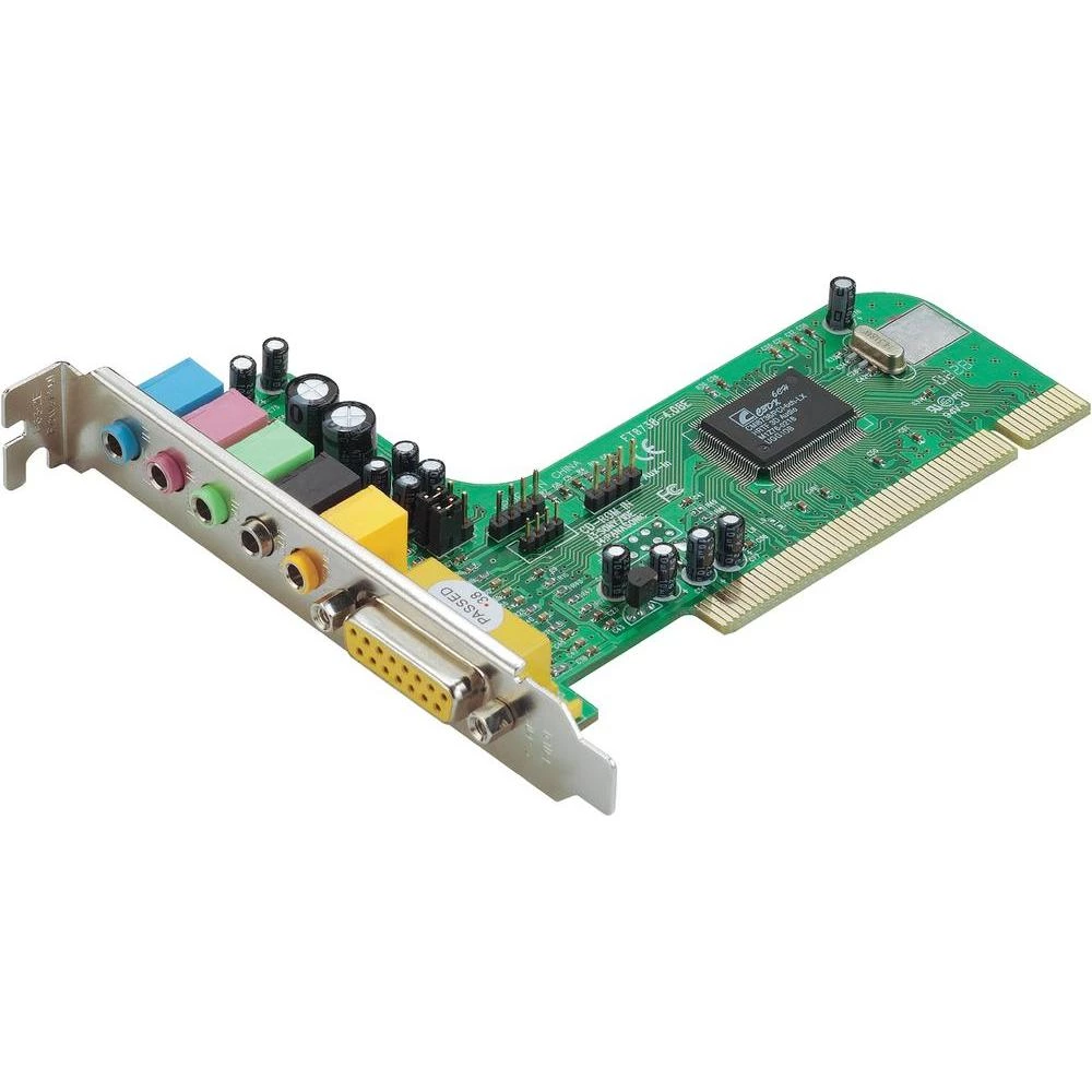 Ova PCI kartica s čipom C-Media CME 8738LX pored ulaza Gameport/MIDI, Line-in, Mic-in nudi i 6 analognih izlaza na 3 stereo banana utičnice, za optimalan doživljaj 5.1-kanalnog zvuka.