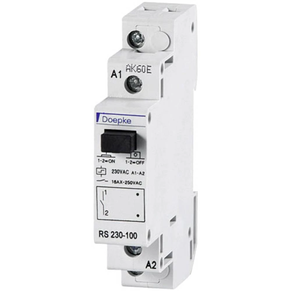 Prekidač impulsa, također: daljinski ili pulsni prekidač ili Eltako, uključite električnim impulsom i ponovite drugi. Serija RS prebacuje električna opterećenja do 16 A u impulsnom načinu rada. Verzija je pogodna za ugradnju u električnu distribuciju. Ovi impulsni prekidači imaju lokalne komandne ulaze za uključivanje i isključivanje. Značajke: - visoka fleksibilnost kroz različite konfiguracije kontakata; - Kontura i terminal kompatibilan s instalacijskim relejnim programom; - Mogućnost vizualnog prikaza radnog stanja pomoću LED-a; - niska razina buke i buke; - radni ciklus: 100% s odstojnikom 0,5 TE; - prikaz položaja prednjeg prekidača; - Glimmlampen paralelno s kontrolnim gumbima moguće; - jednostavno povezivanje zbog velikodušnih dimenzija; - nije moguće umetanje žica za spajanje; - laka dostupnost za spajanje napajanja svitka; - otporan na dodir prema BGV A3; - Jednostruka montaža za montažnu šinu od 35 mm; - Lokalni u. Središnje upravljačke - dvostupanjske grupe (samo RSZ) Način montaže: - Brza montaža na tračnicu kanala - položaj ugradnje po želji Područja primjene: Komponente nude univerzalne mogućnosti primjene za kontrolne zadatke u industrijskoj i građevinskoj tehnologiji, kao iu kućnim instalacijama. Posebno su prikladni za rasvjetne sustave, električne grijače, ventilacijske sustave, klimatizacijske sustave, ventilatore, toplinske pumpe i svjetiljke sa žarnom niti i plinske cijevi. Napomene: - Oznaka uređaja serije RS opisuje i nazivni napon (prva skupina znamenki) i kontaktnu verziju (zadnja skupina znamenaka), koja je navedena u nizu NO, NC i CO. Dakle, "RS 024-110" z. B. nazivni napon od 24 V, jedan normalno otvoren i jedan NC, ali bez preklopnog kontakta; - Radni ciklus (ED) je maks. 1 h. Za postizanje 100% ED potrebno je koristiti distancer RD 05 na obje strane. - Žarulje spojene paralelno stvaraju jalove struje koje se mogu kompenzirati kondenzatorskim blokom ako su prevelike da bi se spriječilo prekomjerno zagrijavanje.