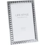 Deknudt metalni portretni okvir s uzorkom provjere srebro, 15 x 20 cm Moderan okvir za slike u slogu s uzorkom provjere. Kvalitetni metalni okvir isporučuje se s prozirnim staklom i crnom stražnjom pločom, uključujući postolje. Značajke: -Materijal: metal -Boja: srebro; s uzorkom za provjeru - dimenzije: 15 x 20 cm - sa postoljem i zidnom montažom - s prozirnim staklom i crnim stražnjim zidom