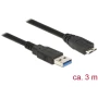 Delock USB 3.0 Priključni kabel [1x Muški konektor USB 3.0 tipa A - 1x Muški konektor USB 3.0 tipa Micro B] 3 m Crna pozlaćeni k