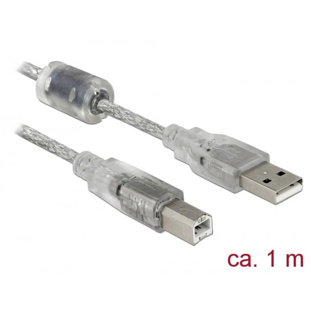 Delock USB kabel USB 2.0 USB-A utikač, USB-B utikač 1.00 m prozirna s feritnom jezgrom