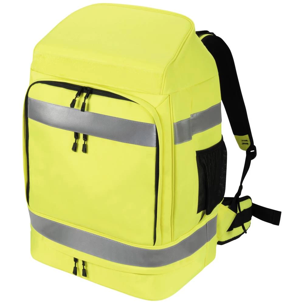 Ruksaci visoke vidljivosti tvrtke DICOTA nude pouzdano rješenje za izazovan svakodnevni rad na otvorenom. Svi proizvodi zadovoljavaju važne kriterije nabave kao što su ergonomija, izdržljivost i održivost. Najviša kvaliteta i funkcionalnost susreću se s održivim materijalima od recikliranih PET boca - zaštita zaposlenika i okoliša u isto vrijeme. Korištenjem fluorescentnih tkanina i 3M reflektirajućih traka u skladu s EN ISO 20471:2013, ruksaci nude izvrsnu vidljivost i time poboljšavaju radnu sigurnost na vanjskim prostorima kao što su gradilišta, šume i tijekom spasilačkih akcija, kao i na putu do posla. Vanjski materijal je vodoodbojan prema EN ISO 4920, razina 4, a priložena kišna navlaka pruža dodatnu zaštitu pri jakoj kiši. Sustav protoka zraka u stražnjem dijelu jamči ugodnu cirkulaciju zraka kada temperatura poraste. Podesive naramenice za bokove i prsa te promjenjiva duljina leđa osiguravaju udobnu raspodjelu težine i optimalnu ergonomiju. Ruksak je dizajniran za vanjsku upotrebu zahvaljujući 65 litara prostora za pohranu radne i rezervne odjeće. Odvojeni pretinac nudi prostor za radnu kacigu, dok se cipele mogu pospremiti na dno ruksaka. Osobni dodaci kao što su pametni telefon, power bank ili svjetiljka mogu se udobno smjestiti u prednje ili bočne džepove. Ruksak se može personalizirati s imenom ili logom zahvaljujući odjeljku za posjetnice na leđima i području s čičkom. Hi-Vis ruksak od 65 litara nudi maksimalan prostor, udobnost i vidljivost te je idealan za zahtjevan rad na otvorenom. Također poboljšava sigurnost na radu i pomaže u sprječavanju osobnih nesreća.