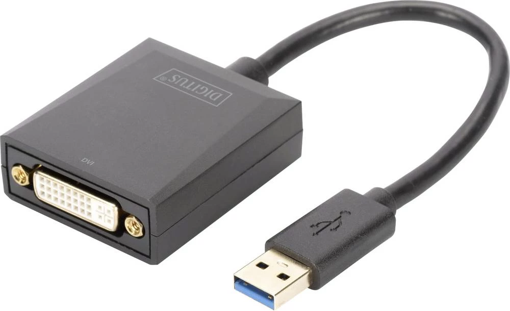 DVI / USB 3.0 Adapter [1x Muški konektor USB 3.0 tipa A - 1x Ženski konektor DVI, 24 + 5 polova] Crna Sa zaštitom Digitus
