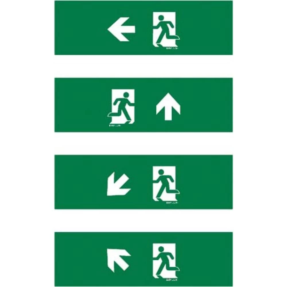 Piktogram postavljen za jednostruka svjetla za slučaj nužde serije SLX 14 Flat. Set sastavljen od 4 folije piktograma s razmakom prepoznavanja 14 m (DIN / EN) (strelica gore desno, gore lijevo, dolje desno i dolje lijevo)