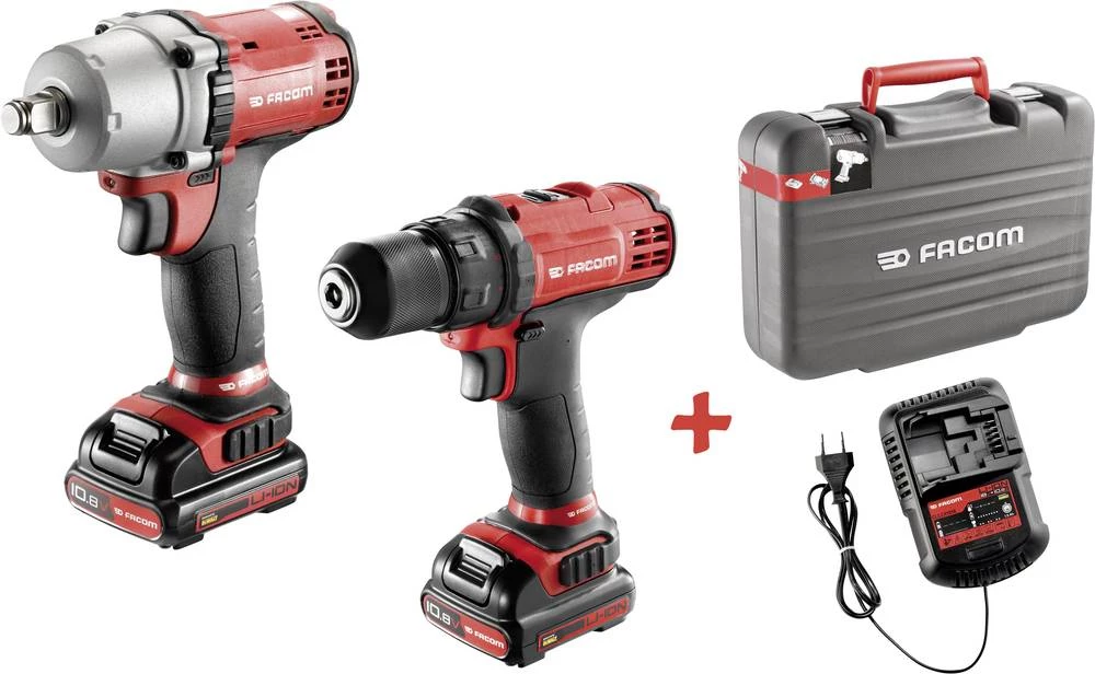 Facom bušilica i odvijač na bateriju, udarni odvijač na bateriju 10.8 V 1.5 Ah Li-Ion uklj. 2 akumulatora, uklj. kovčeg