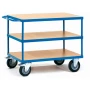 Stolna kolica - nosivost 500 kg poda: - 3 kata - platforma na bazi drva u bukovoj dekoraciji. Okvir: - Zavarena čelična konstrukcija - Površina prekrivena prahom - Trajno zaštićena površina, otporna na udarce i ogrebotine - Gurnite ručicu vodoravno. Gume: - Kotači s gumenim gumama na gumenim čeličnim naplatcima - Okretni kotači s kočnicama. Ležajevi kotača: - Glavčina s valjkovim ležajevima.