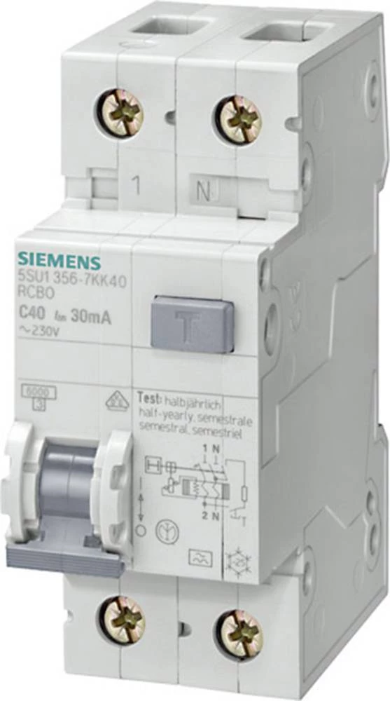 - FID-zaščitni prekidač/instalacijski prekidač 2-polni 40 A 0.03 A 230 V Siemens 5SU1356-7KK40