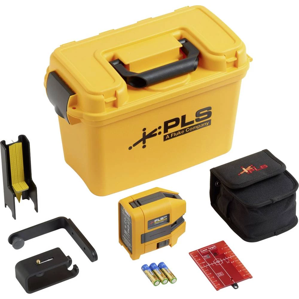 - PLS 5R laserski uređaj za niveliranje, PLS platnena vrećica, PLS BP5 alkalna baterija, PLS postolje FS, PLS MLB magnetski nosač L, PLS PT klatno cilindar, PLS GRT4 zelena reflektirajuća meta, sigurnosni list i brzi vodič