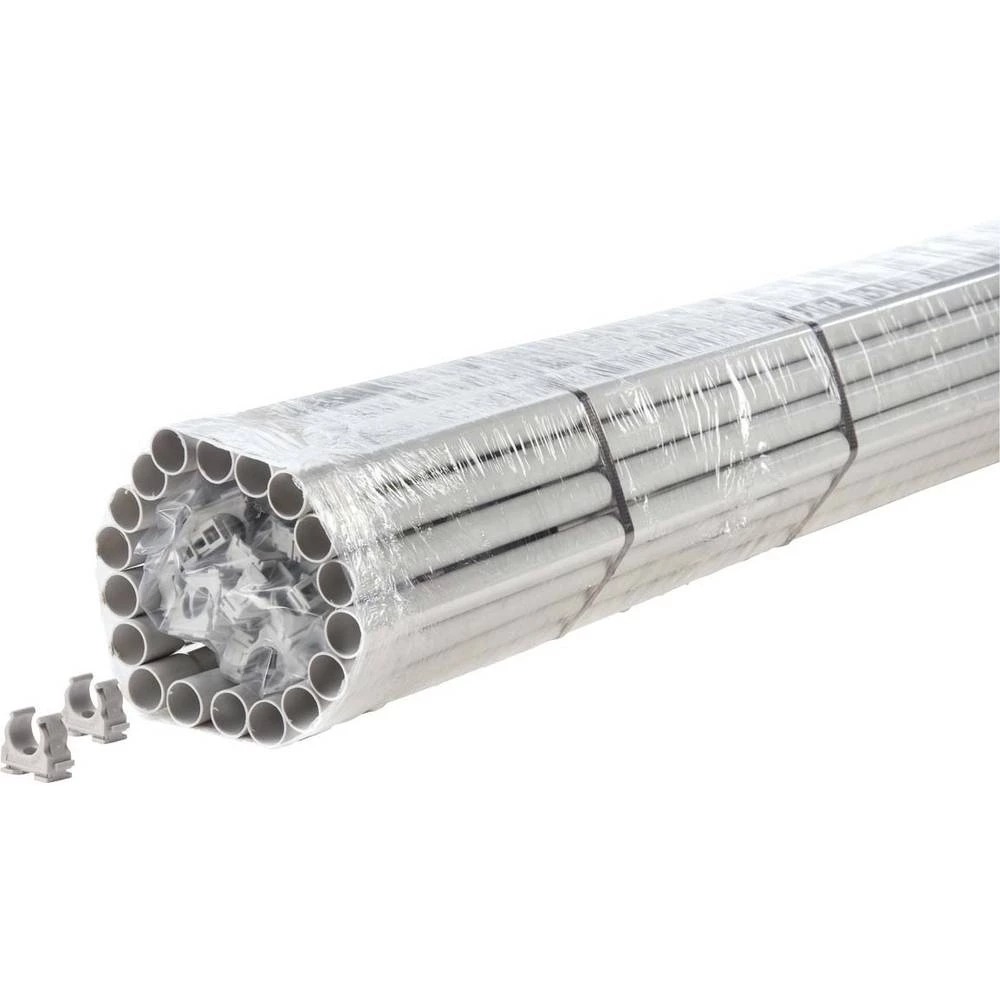 Komplet FPKu-EM-F-2m je kompletan paket s PVC plastičnim cijevima s poluproizvodom od polipropilena, koji se ne širi plamenom, u šipkama od 2 m, s jednostranim lijevanim rukavcem, uključujući stezaljke s klemama. Ova plastična cijev s polovima koristi se za sve standardne primjene na površini, osobito za površinsku ugradnju u industrijskim i postrojenjima. Prednosti su u srednjem tlaku i visokoj otpornosti na udarce. Zbog visoke otpornosti na koroziju, cijev je također otporna na agresivne tvari. VDE 0605 DIN EN 61386-21 Minimalna tlačna čvrstoća: 750N / 5cm