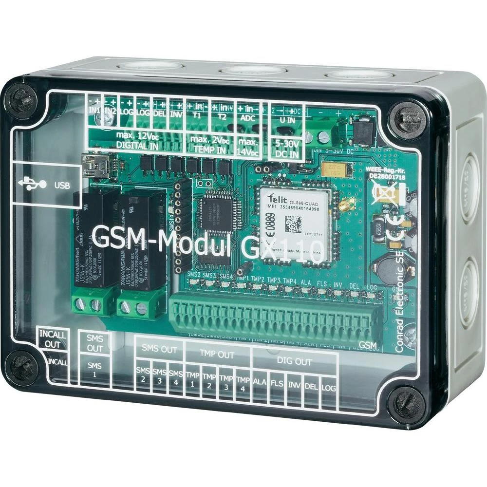GSM-modul za daljinsko preklapljanje, mjerenje i alarmiranjeConrad GX110
