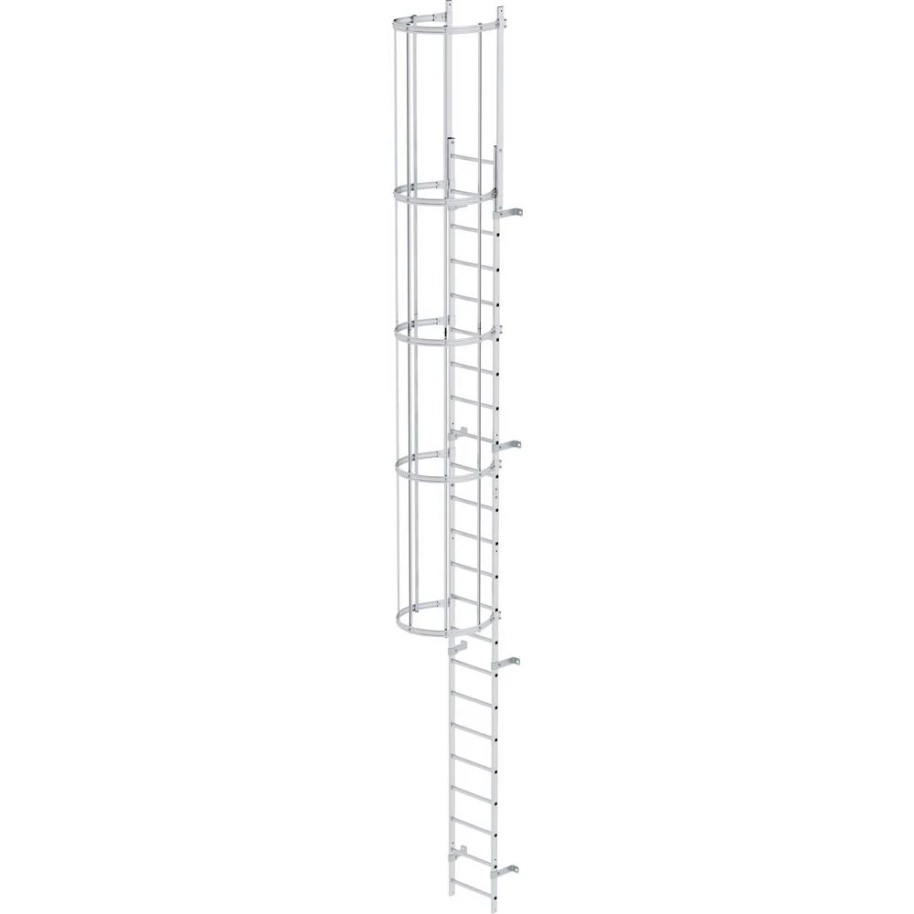 Područje primjene Pristup strojevima i mehaničkim sustavima. Bez obzira na visinu penjanja, primjenjuje se sljedeće: Zaštita od leđa je poželjnija od zaštite penjanja (kombinacija nije dopuštena jer spašavanje otežava zaštita leđa). Profesionalni liječnički pregled na prikladnost visine (npr. G 41), potreba ovisi o procjeni rizika (uključujući skupinu ljudi, ukupnu visinu) za odgovarajuće sustave nepokretnih ljestvi. Odgovorni stručnjak za stabilnost za svaki građevinski projekt mora provjeriti i odobriti dokaz o nosivosti podzemlja. Uvijek je potrebna prepreka prolaza (sigurnosna vrata). Ako to zahtijeva situacija pristupa, moraju biti dostupni odgovarajući sigurnosni uređaji (npr. Čelična završna vrata) kako bi se zaštitili od neovlaštene uporabe. Dijelovi ljestve moraju se podići više za bočne stepenice. U slučaju više vodičkih staza, preklapanje stražnje zaštite mora biti najmanje 2000 mm. Na nesigurnim izlaznim točkama ograde se moraju postaviti s obje strane fiksne ljestvice ili dovesti u izlaznu razinu. Razmak na izlazu ne smije biti veći od 60 - 75 mm. Početna dimenzija: Udaljenost od ulazne razine do prvog stupca 100 - 400 mm. Gornji rub gornjeg zupčanika mora biti u ravnini s gazištem izlazne točke. Dimenzije zazora između sustava fiksnih ljestvi i ograde ne smiju prelaziti 120 mm. Priključak na zaštitni odvodnik mora biti uspostavljen i otpušten sa sigurnog mjesta. Sigurno stajanje je z. B. postolje s ogradama i siguran pristup.