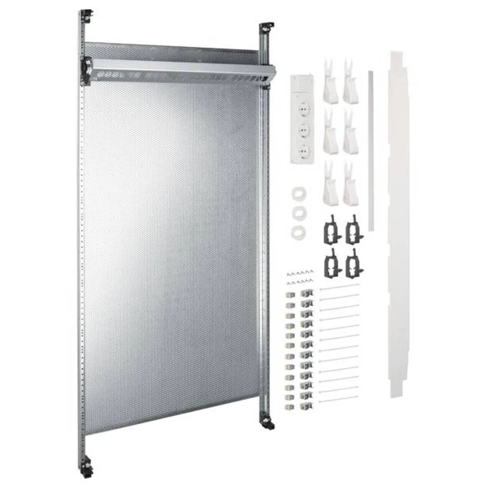 Kompletna terenska multimedija, universZ, 1050mm, 2 polja, sa 12x patch modula RJ45. Instalacijski set za multimedijske aplikacije za ugradnju u sustav ormara brojila s brzom montažom bez alata prema standardu dimenzija DIN 43870. Unaprijed sastavljen komplet za ugradnju koji se sastoji od potpornog okvira s potpornim tračnicama, perforirane montažne ploče i sastavljene spojne ploče, izolirane i pričvršćene vijcima za 12 priključaka (1 polje) ili za 24 priključka (2 polja) s trakama za označavanje. Uključeno je: 6 ili 12 oklopljenih podatkovnih modula RJ45 Cat. 6 (500 MHz), trostruke utičnice s kontaktom za uzemljenje (mogu se rotirati za 90 stupnjeva) za spajanje kabela preko utičnih stezaljki, držač multimedijskog uređaja za VDI komponente i stezaljke za pričvršćivanje kabela . Napomena: Linija od patch panela do tračnice za izjednačavanje potencijala (funkcionalno izjednačavanje potencijala prema DIN EN 50310 - VDE 0800-2-310) mora biti spojena (nije uključena). Pregrade iz multimedijskog polja uz druge instalacijske komplete potrebno je ugraditi prema primjeni (nije uključeno).