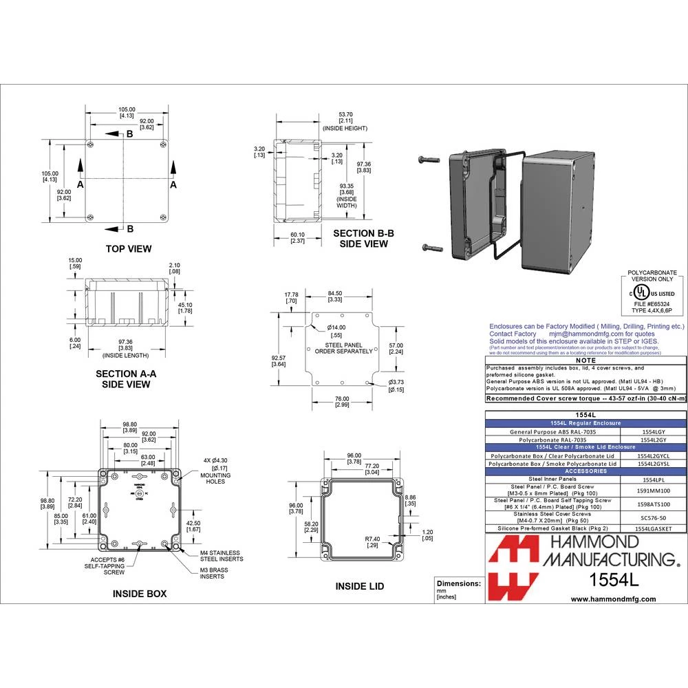 Hammond Electronics 1554 PC SL Univerzalno kućište Polikarbonat Siva 1 ST