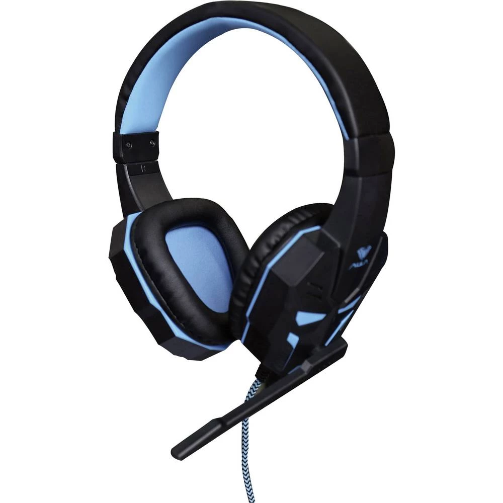 Igraće naglavne slušalice sa mikrofonom 3,5 mm priključak Sa vrpcom AULA Prime Preko ušiju Crna, Plava boja