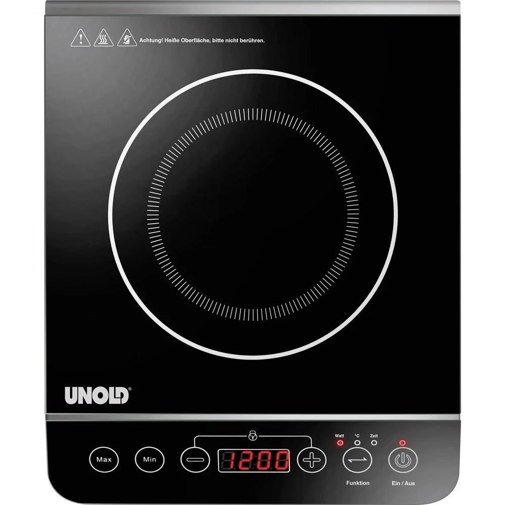 Profesionalci to oduševljavaju! Sad se san ostvario i za kuhare amatere: kuhanje bez otpadne topline i naknadno zagrijavanje. Najbolje: prostora za novu indukcijsku ploču tvrtke Unold ima čak i u najmanjoj kuhinji. Ušteda energije, praktično i munjevito kuhanje - ne može biti lakše. Temperatura i mjerač vremena podešavaju se putem elegantne upravljačke ploče dodirne pločice koja je izravnana radi bolje čitljivosti. Ploča za kuhanje snage do 2000 W može se regulirati u šest razina snage. Tajmer se može postaviti na 180 minuta; Uz to, postoji 10 razina temperature, od 60 ° C do 240 ° C. Trostruka sigurnosna funkcija uređaj prilagođava promjenama napona, najkasnije nakon 2 sata sama isključuje ploču i otkriva lonce koji nisu prikladni za indukciju. Zaštita od pregrijavanja i sigurnost djece su standardni.