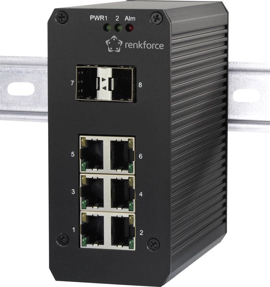 Ova mrežna sklopka optimizirana je za industrijsku uporabu. Aluminijsko kućište s stupnjem zaštite IP-30 pogodno je za montažu na DIN tračnicu. Napajanje je suvišno (redundantno napajanje) i odvija se preko stezaljke. U slučaju usluge, to se jednostavno može odbiti. Konfiguracija se odvija pomoću DIP prekidača.