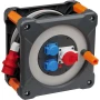 - CEE kabelska namotaj s kabelom od 20 m (H07RN -F 5G2,5), 1 CEE utičnicom 400 V / 16 A i 2 uzemljene utičnice zaštićene od prskanja 230 V, zahvaljujući klasi zaštite IP44 i robusnom RN kabelu, idealan je za stalnu uporabu na otvorenom, na primjer na gradilištima