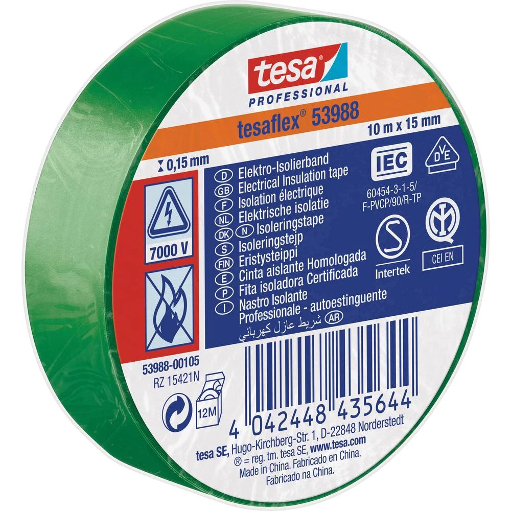 Izolacijska traka tesa® 53988 Zelena (D x Š) 10 m x 15 mm tesa 53988-00105-00 1 Role