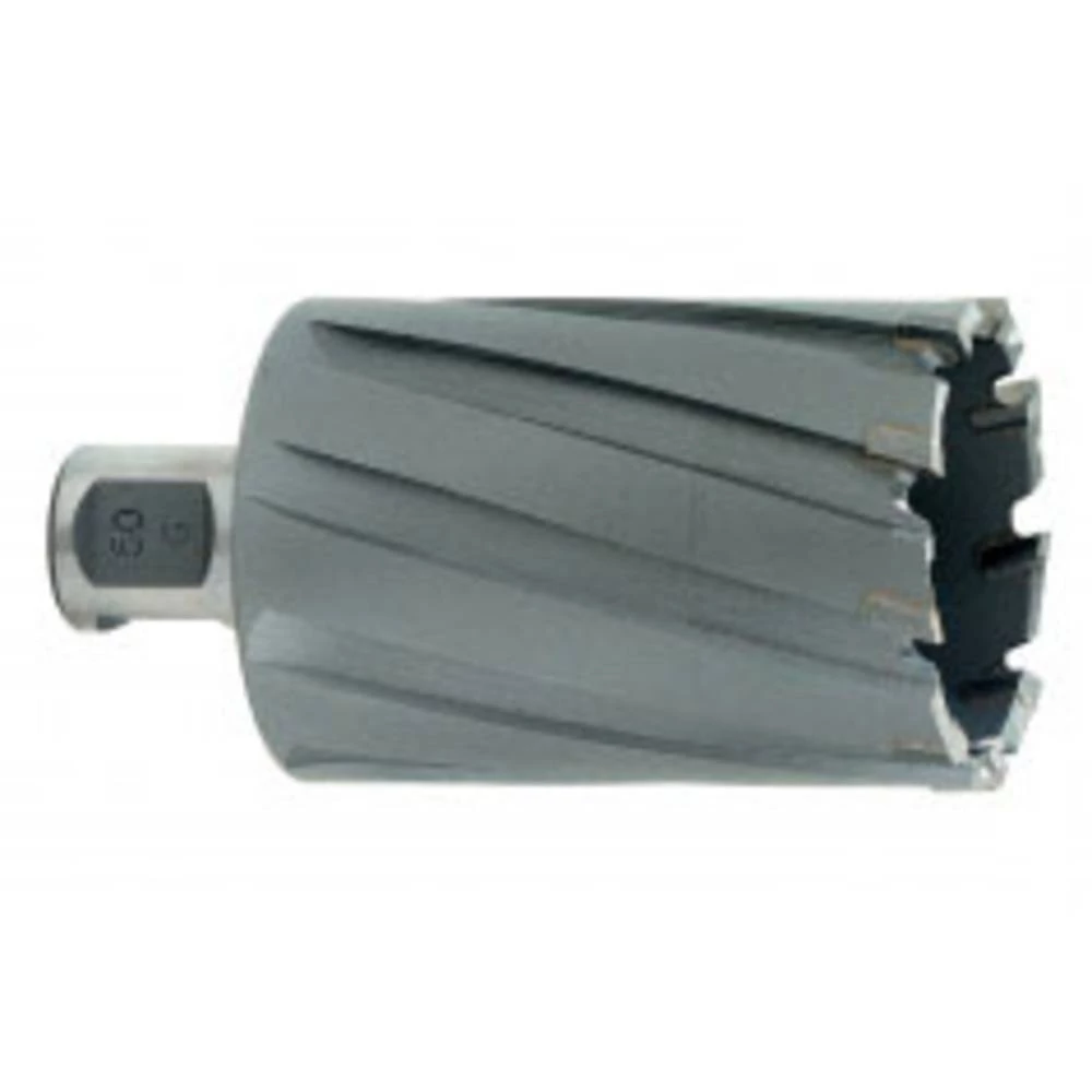 HM bušilica s jezgrom 21x55 mm, Weldon osovina 19 mm (3/4 ""). Bušilica s jezgrom Ø 14 - 60 mm s Weldon-ovim držačem 19 mm (3/4 "). Bušilica s jezgrom od 70 mm s Weldon osovinom 32 mm (1 1/4 "). Koristite samo odgovarajući zatik za centriranje. Također je pogodno za legiranje čelika.