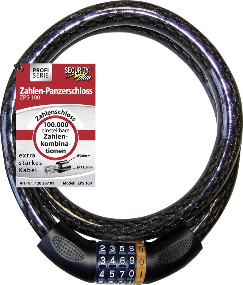 Kabelski lokot za bicikl ZPS 100 Security Plus crna brojčana brava
