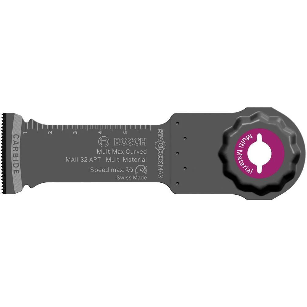 Precizna oštrica Starlock MAII 32 APT MultiMax osigurava precizne rezove pri radu s očvrslim metalom. Njegovi visokokvalitetni karbidni zubi izrezuju abrazivni i tvrdi materijal s maksimalnom otpornošću na habanje. Zaobljeni vrh (Curved-Tec) povećava trajnost sprječavajući lomljenje zuba. Istodobno, omogućuje precizno rezanje uranjanjem bez tragova i ljuskanja. Oštrica reže metalne limove, abrazivne materijale kao što su epoksid, GRP (plastika ojačana staklenim vlaknima), CFRP (plastika ojačana karbonskim vlaknima), gips karton, ploča cementnim vlaknima i plastika ojačana vlaknima. Pogodan je za sve višenamjenske alate Starlock Plus i Starlock Max. Starlock Max sustav omogućuje maksimalnu dubinu rezanja, brzinu i svestranost, čak i pod najtežim uvjetima. Starlock sustav ugradnje također omogućuje brzu promjenu lima u tri sekunde bez dodirivanja oštrice.Specijalni Starlock sustav ugradnje omogućuje maksimalni prijenos snage između stroja i pribora zahvaljujući trodimenzionalnom tijesnom prianjanju. Materijal: karbid, širina [mm]: 32, dubina uranjanja [mm]: 70