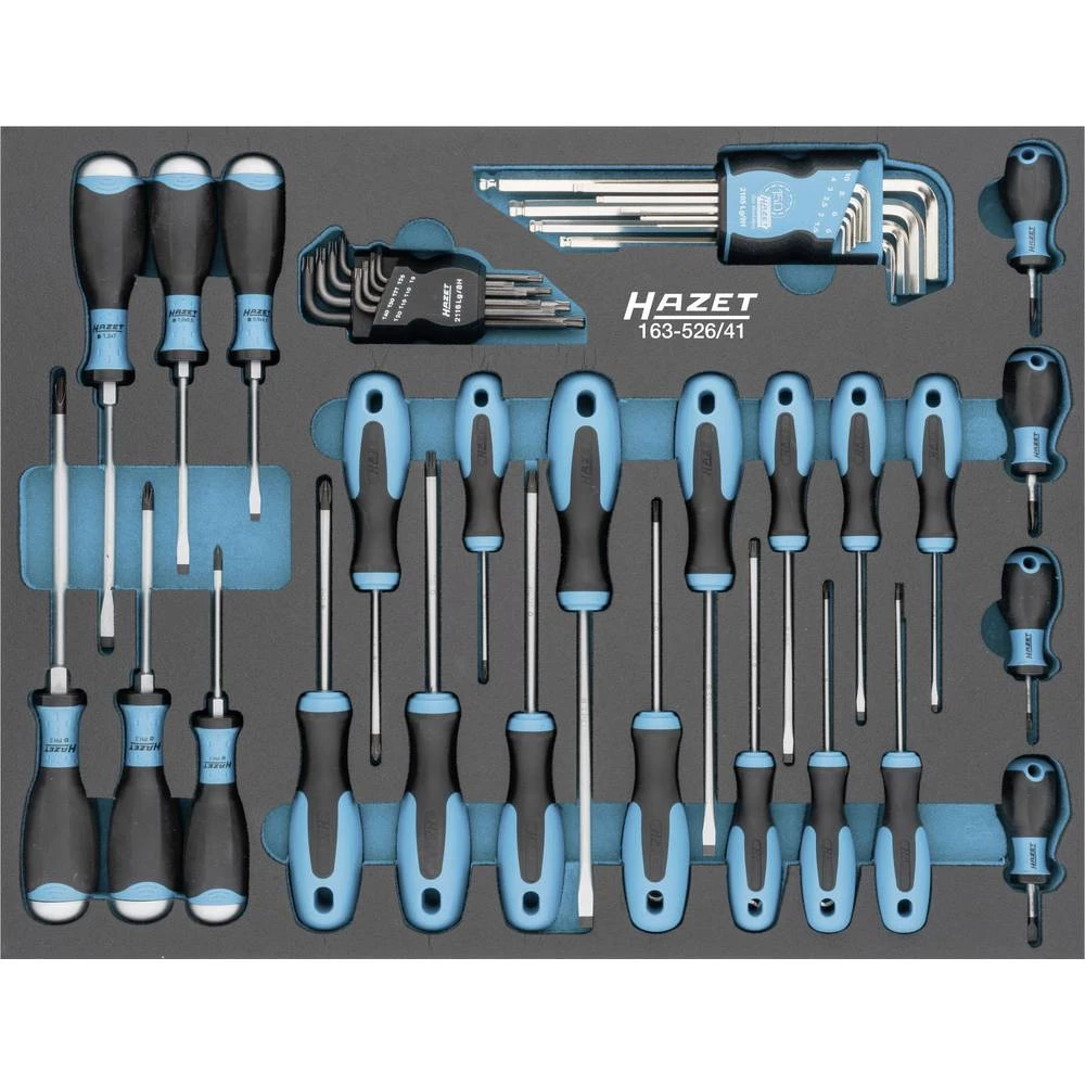 Sustav sigurnosnog umetanja HAZET (SIS). Pogodno za HAZET. Dubina ladice od 398 mm: 173 ∙ 179 N 179 N W 179 W NW 179 NW ∙ 179 BIG-1 XL 179 XL N 179 N XL XX 179 XXL N 179 N XXL A 179 A XXL T 179 T XXL ∙ 180 Ukupna dužina: 519 mm Širina: 392 mm Izlaz: profil utora, Phillipsov profil PH, unutarnji TORX® profil, unutarnji šesterokutni profil Sustav za naručivanje Veličina: 3/3 + (519 x 392 mm) Trim sustav - svi alati otporni na protresanje ugrađeni Brza, integrirana provjera integriteta - odmah je primijećen nedostajući alat. Prikladno za sve pomoćne radioničke kolica HAZET s ladicama. Za pomoćnike kolica za radionice 173, 179 (XL-XXL) i 180 preporučujemo meke umetke od pjene 163-522x40 ili 163-522x50