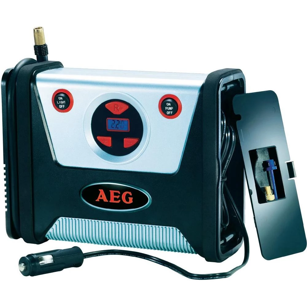 Snabdijevanje zrakom na putu pomoću priključka za upaljač za cigarete od 12 V i automatsko isključivanje pri dostizanju zadanih vrijednosti tlaka. Dugi kabal i osvijetljen zaslon te LED radna