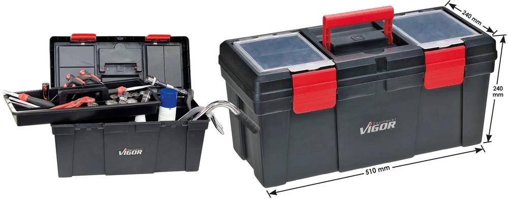 - Kovček z orodjem Vigor V1425 iz umetne mase črne barve, rdeče barve