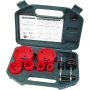Dvodelne pile za rupe izrezuju čiste i glatke rupe s maks. Dubina rezanja od 35 mm za drvo, metal, plastiku, lagane građevinske blokove i gips ploče, itd.