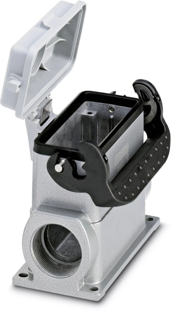 Box mounting base, with single locking latch, height 67 mm, with screw connection, 2x Pg21, with protective covers