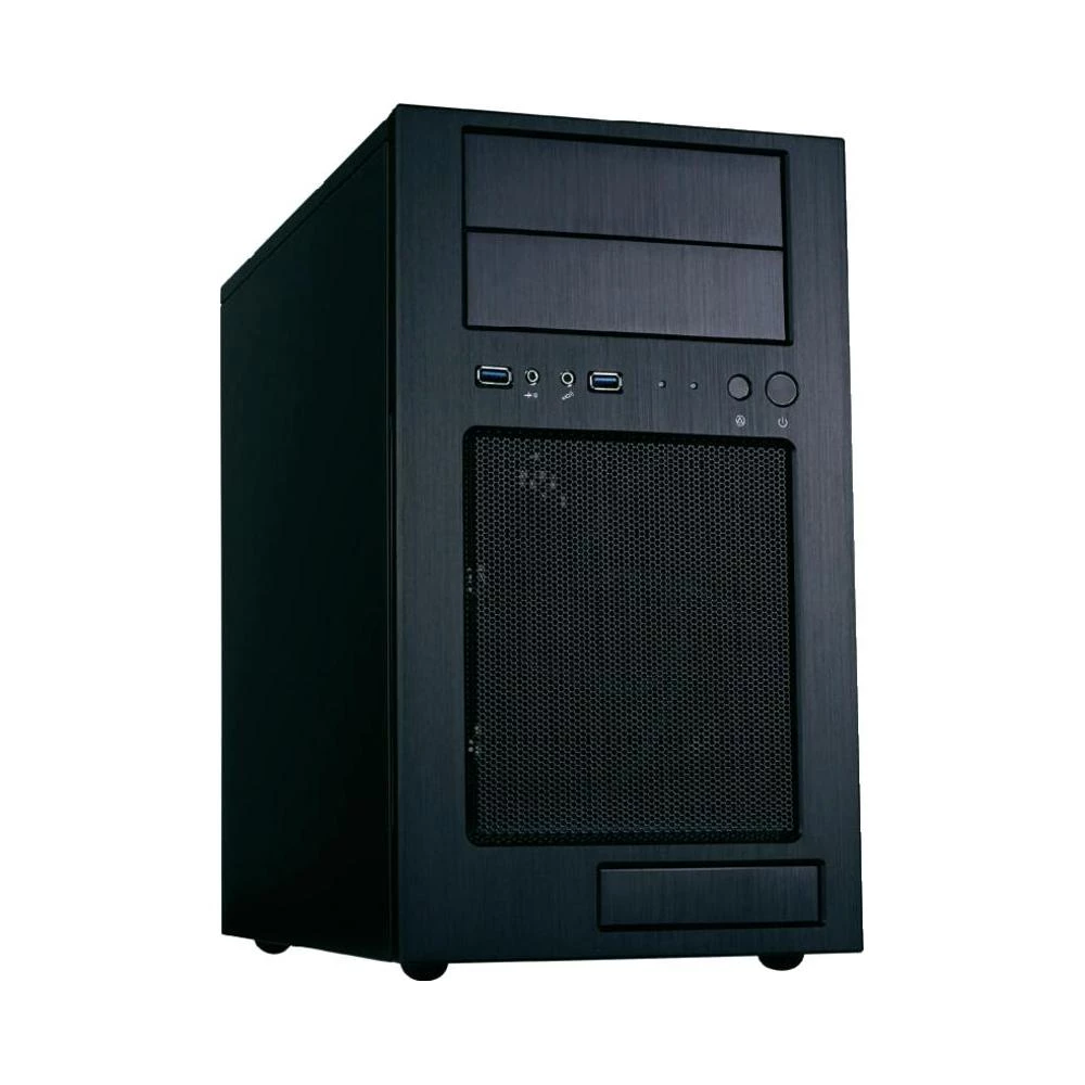 aluminijski prednji zaslon. Iako se kod modela TJ08-E u radi o micro ATX okomitom kućištu, ovaj model može primiti jedan tvrdi disk od 6,4 cm (2,5“) i četiri tvrda diska od 8,9 cm
