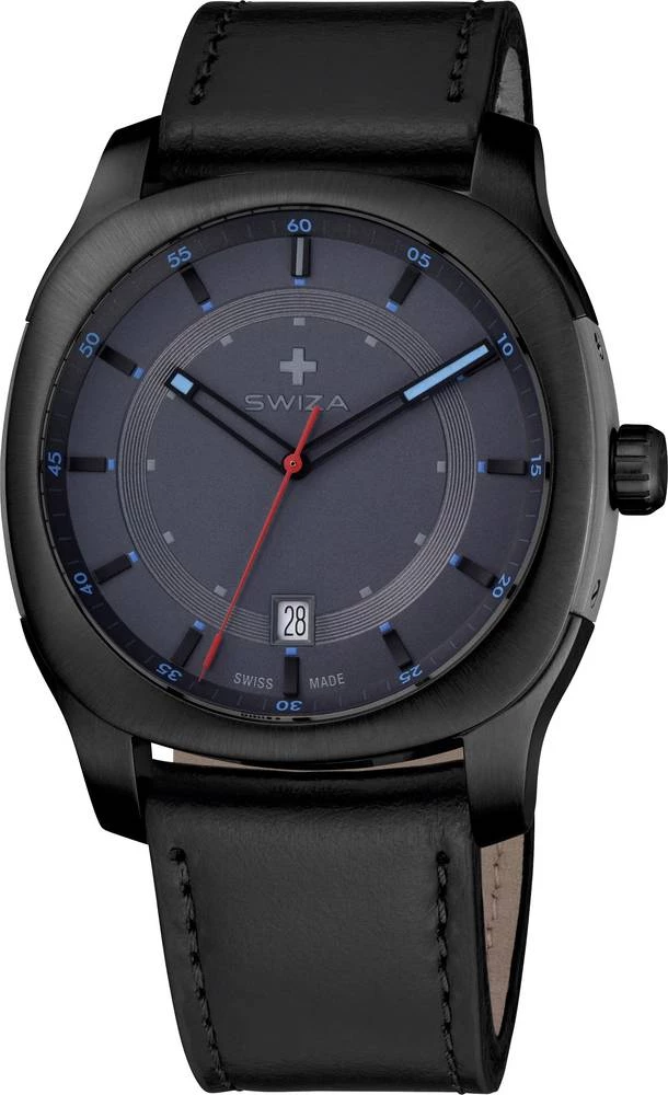 Kvarcni ručni sat WAT.0541.1202 SWIZA promjer 40 mm crna materijal kućišta=plemeniti čelik materijal remena=teleća koža