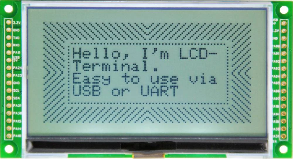 Zaslon za brzu i jednostavnu prezentaciju vašeg sadržaja. LCD-Term dostupan je u razlučivosti 128 x 64 piksela. S dodatnim pinovima za I / O, to je neovisna jedinica na krugovima mikrokontrolera ili postojećim uređajima.