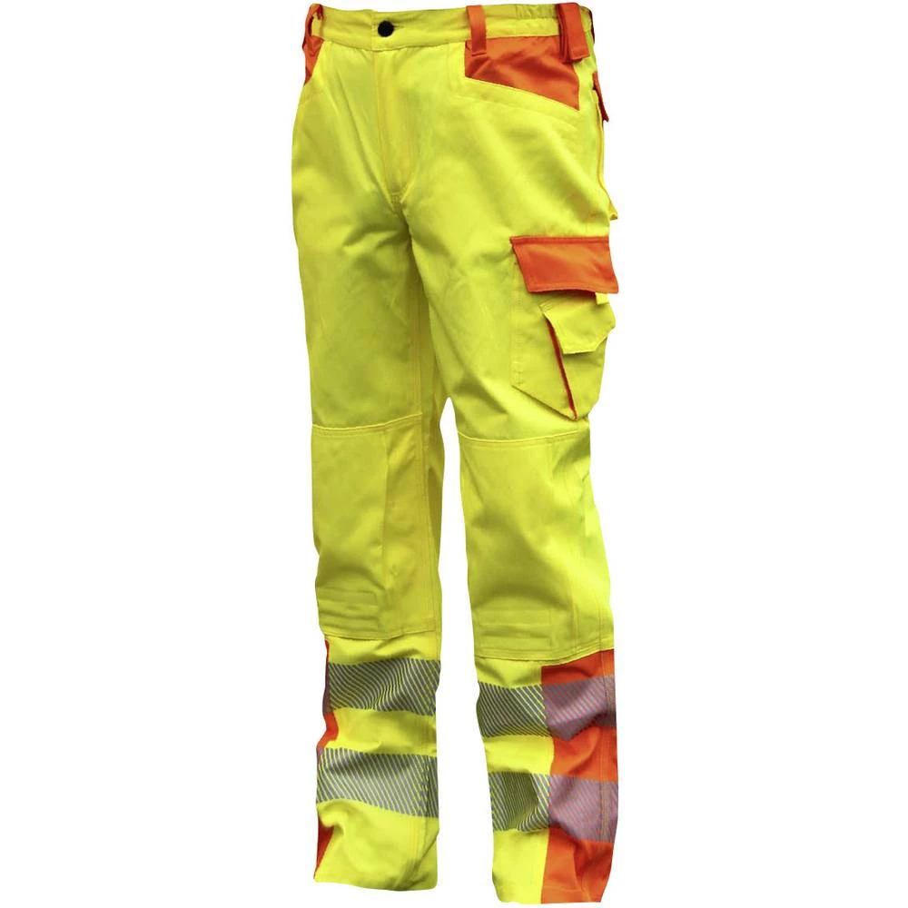 Zaštitne pantalone visoke vidljivosti sa reflektirajućim prugama zahvaljujući elastičnoj traci u pojasu.